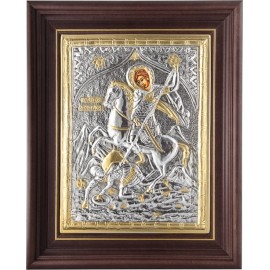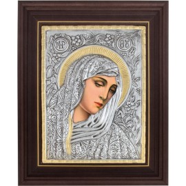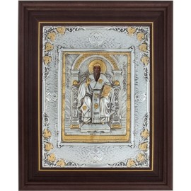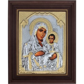 Ξύλινη καρυδί κορνίζα με χρυσή ρίγα και τζάμι.Διάσταση: 34x42..