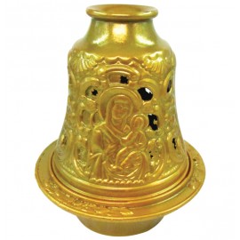 ΧΡΥΣΟ ΚΑΝΤΗΛΙ - ΣΧΗΜΑ ΚΑΜΠΑΝΑΣ,ΕΛΛΙΝΙΚΗΣ ΠΑΡΑΓΩΓΗΣ.Σχεδιασμενο με την απεικονιση της Παναγιας και του Χριστου σε δυο παραστασεις.Διασταση : 9 x 14 cm..